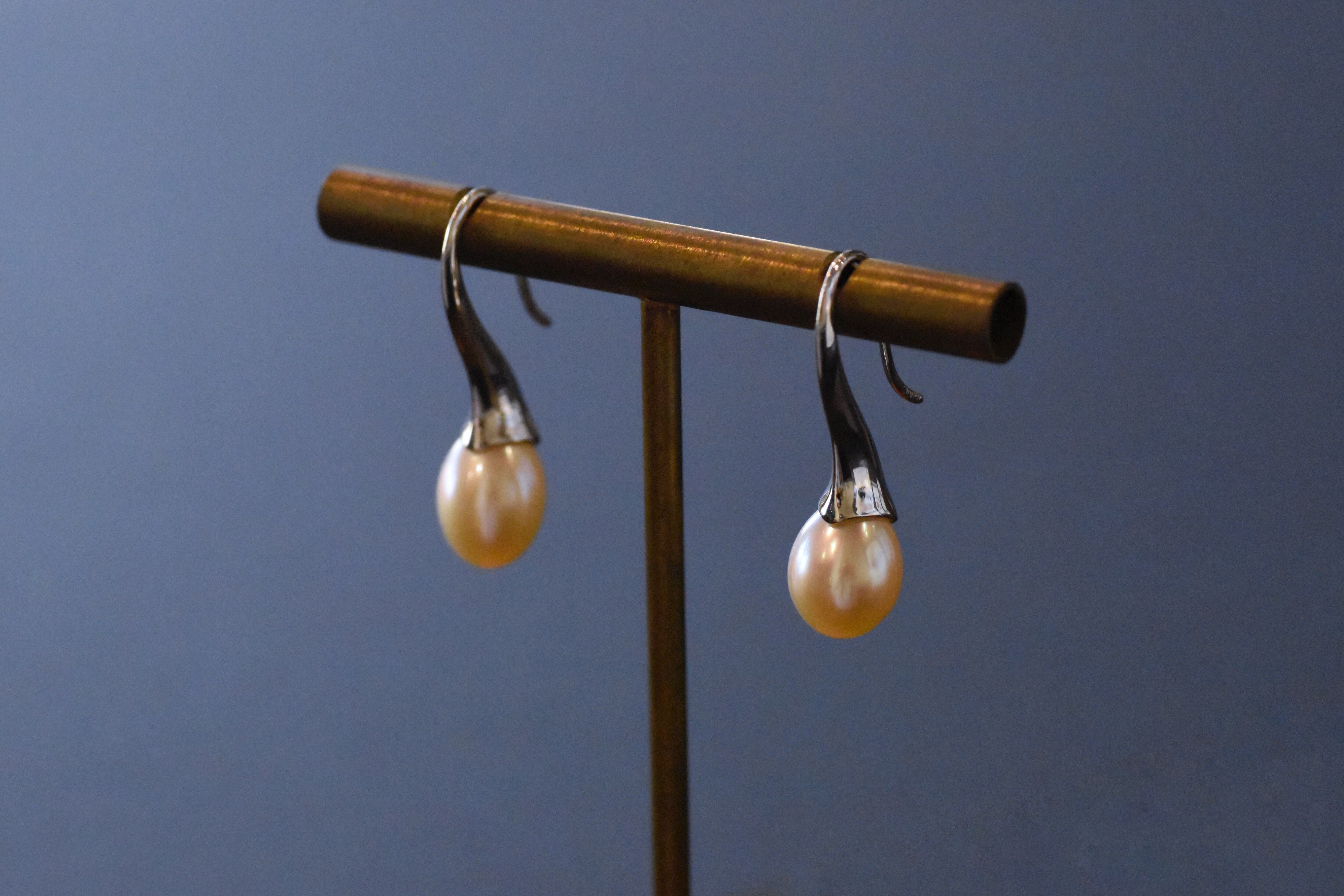 ▪︎取り扱い注意事項 :パールとシルバーの土台とは、土台に芯を立てて、ジュエリー用の接着剤で接着しています。高温多湿の場所には、保管しないでください。保管の環境により、また経年の変化により接着剤が緩んだり、劣化することがあります。ご注意ください。