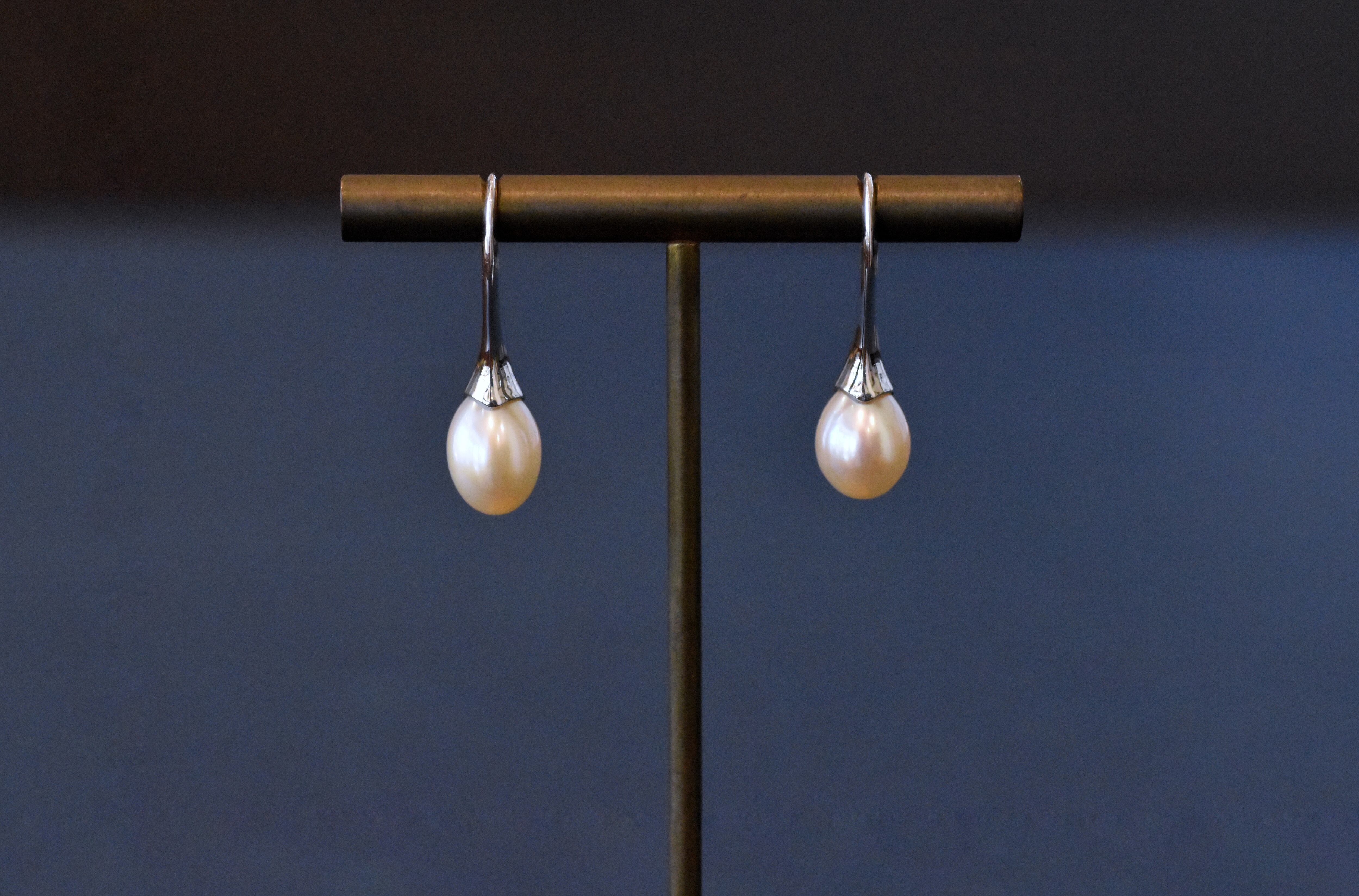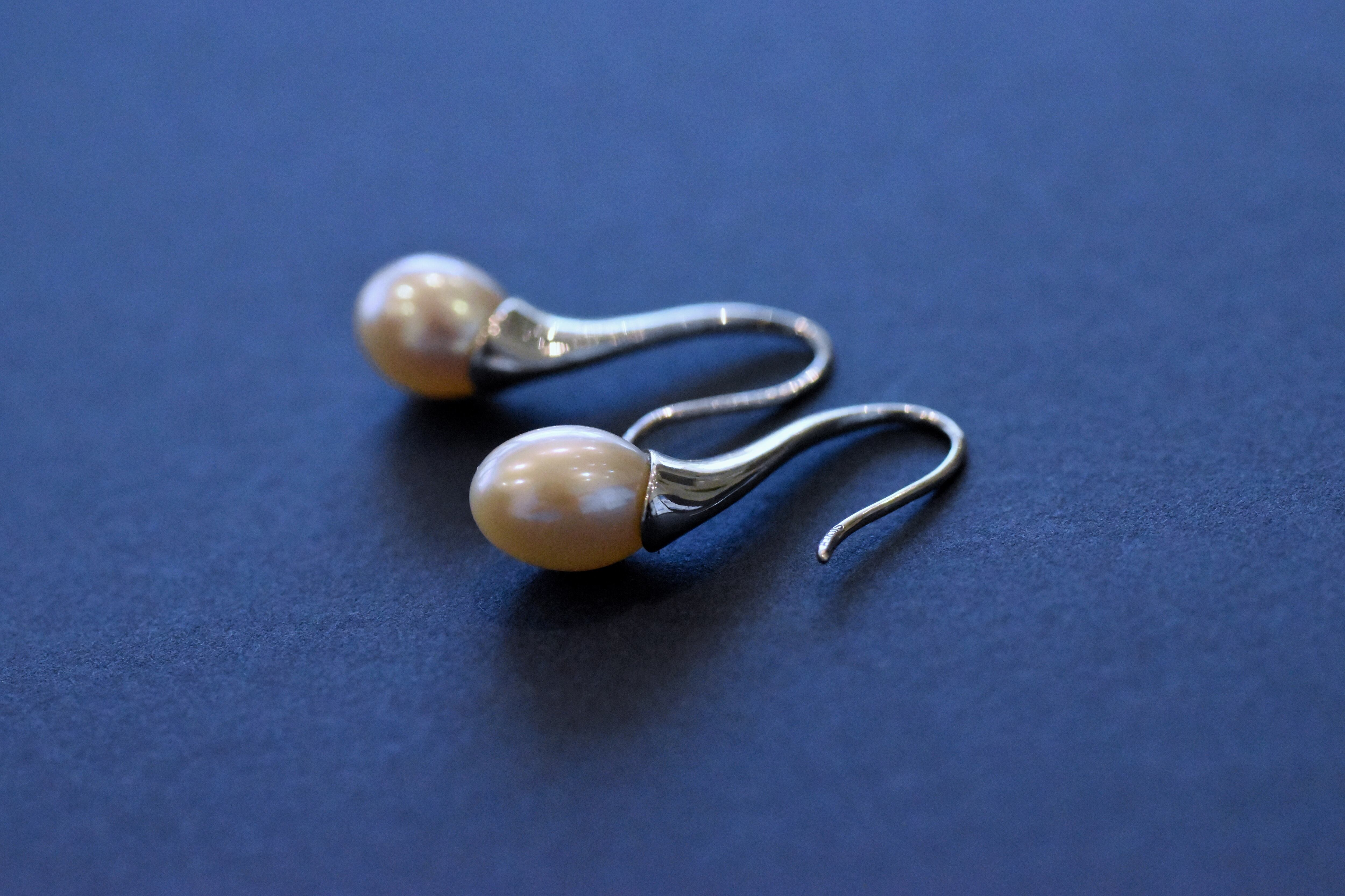 つるんと雫がしたたるようなシルエットのパールのピアス