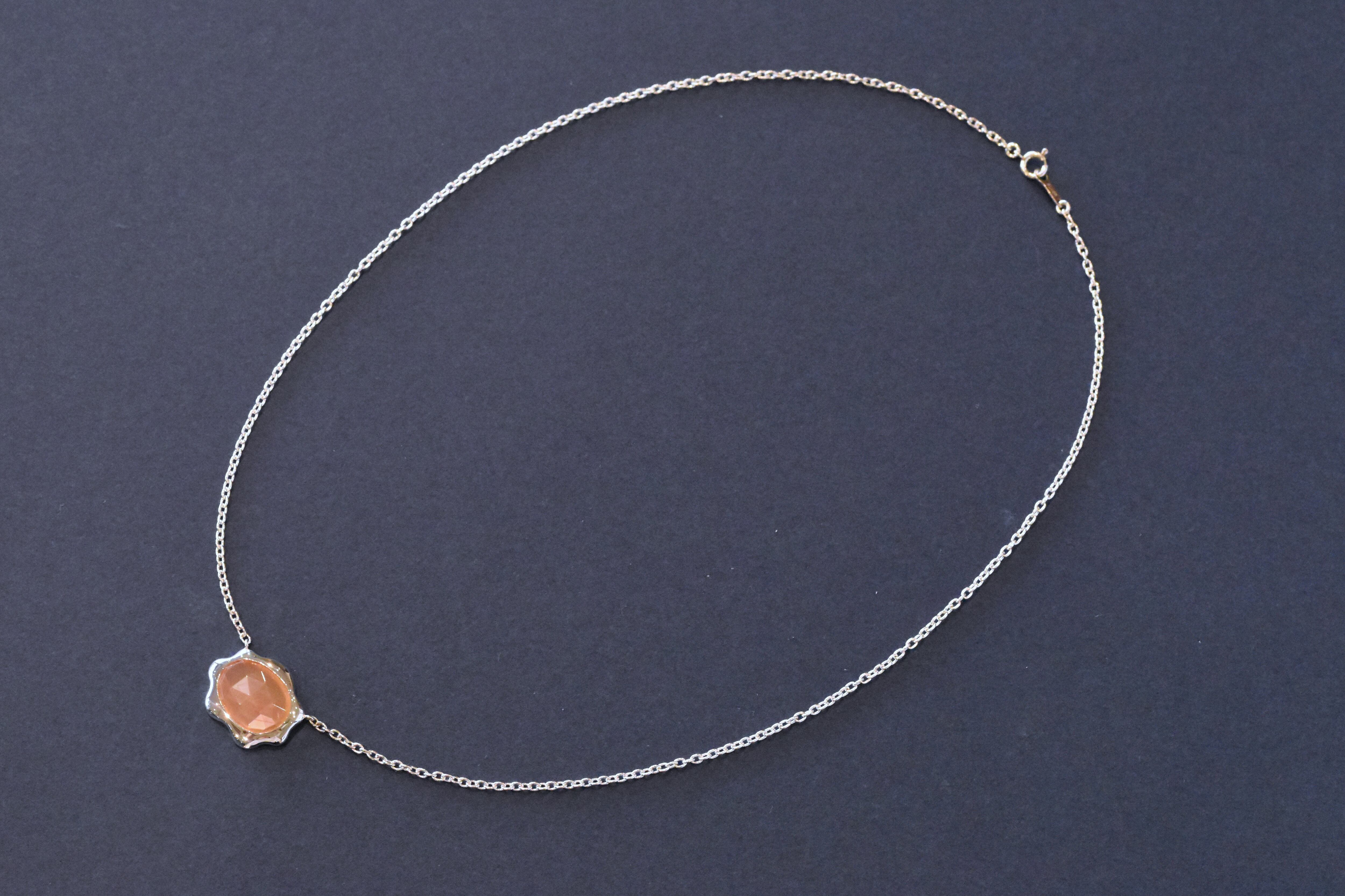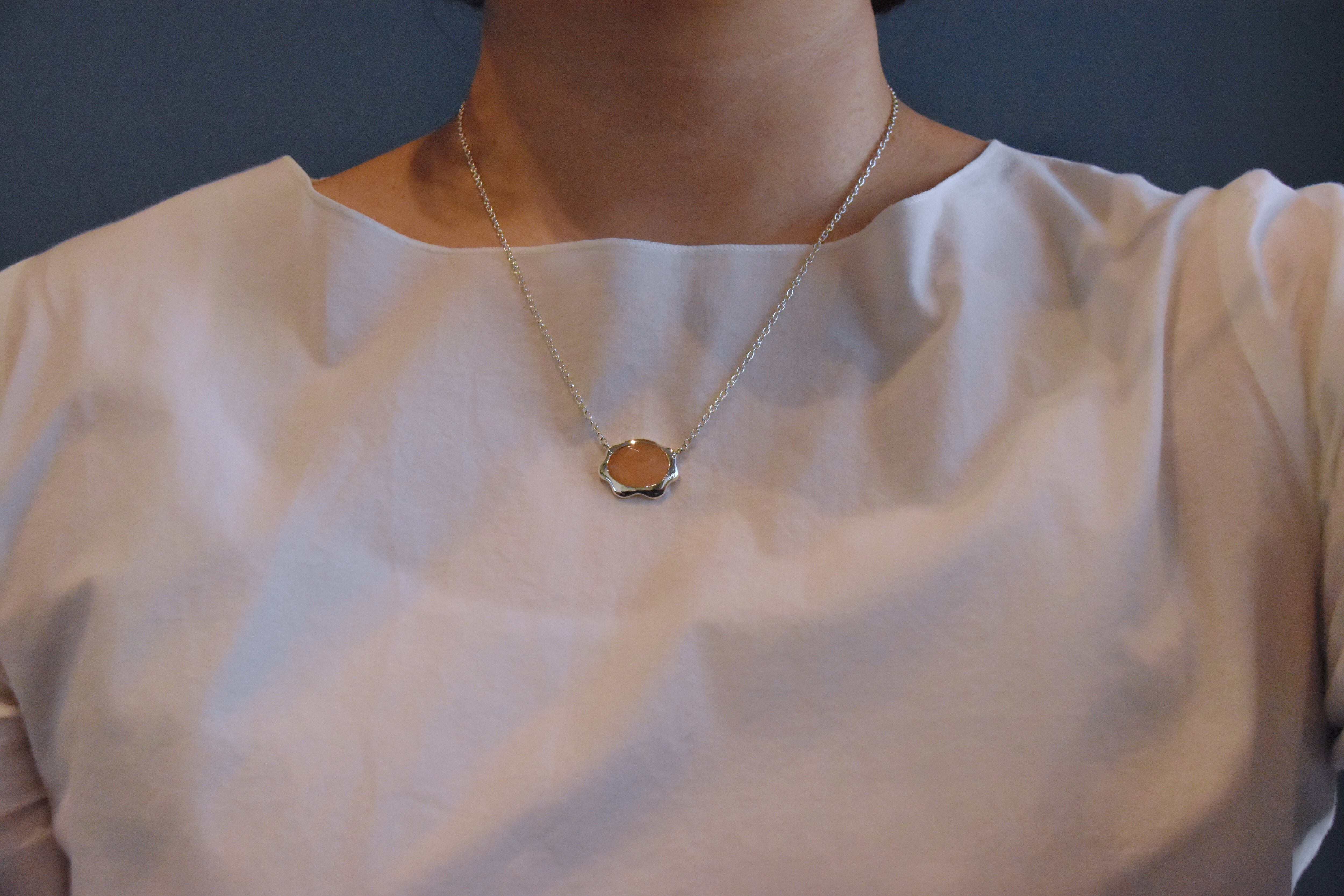 オレンジムーンストーンのシルバーネックレス