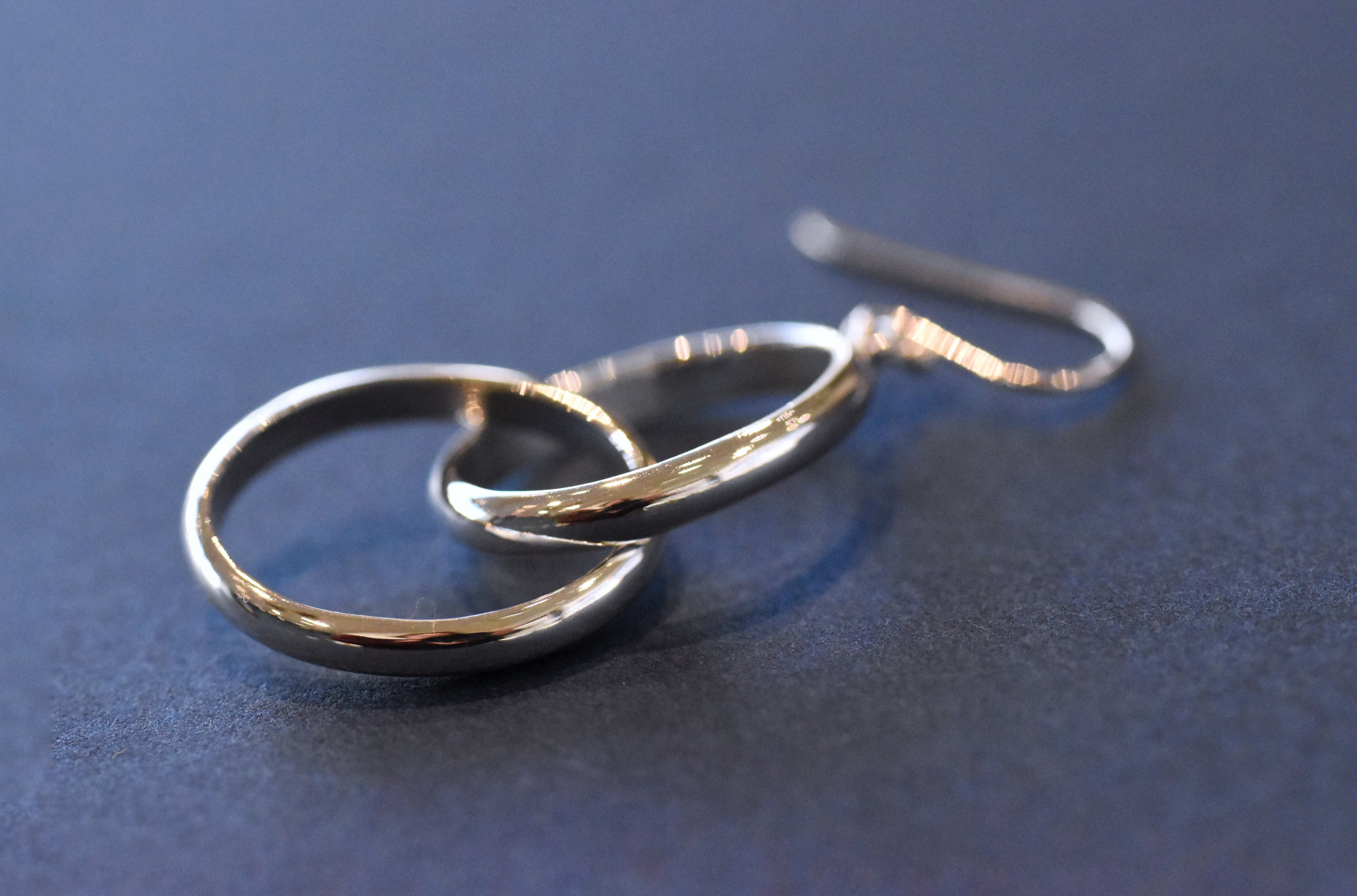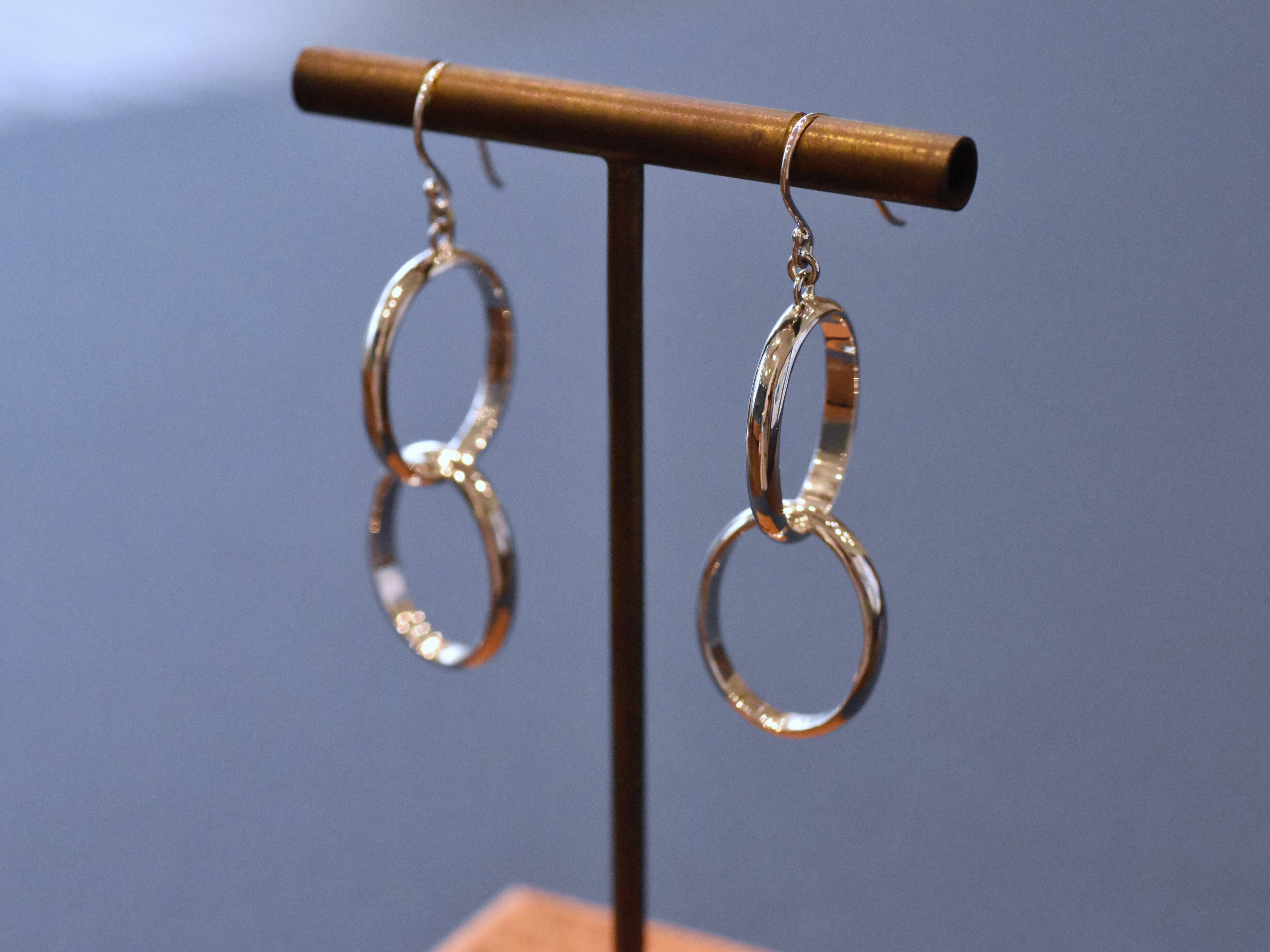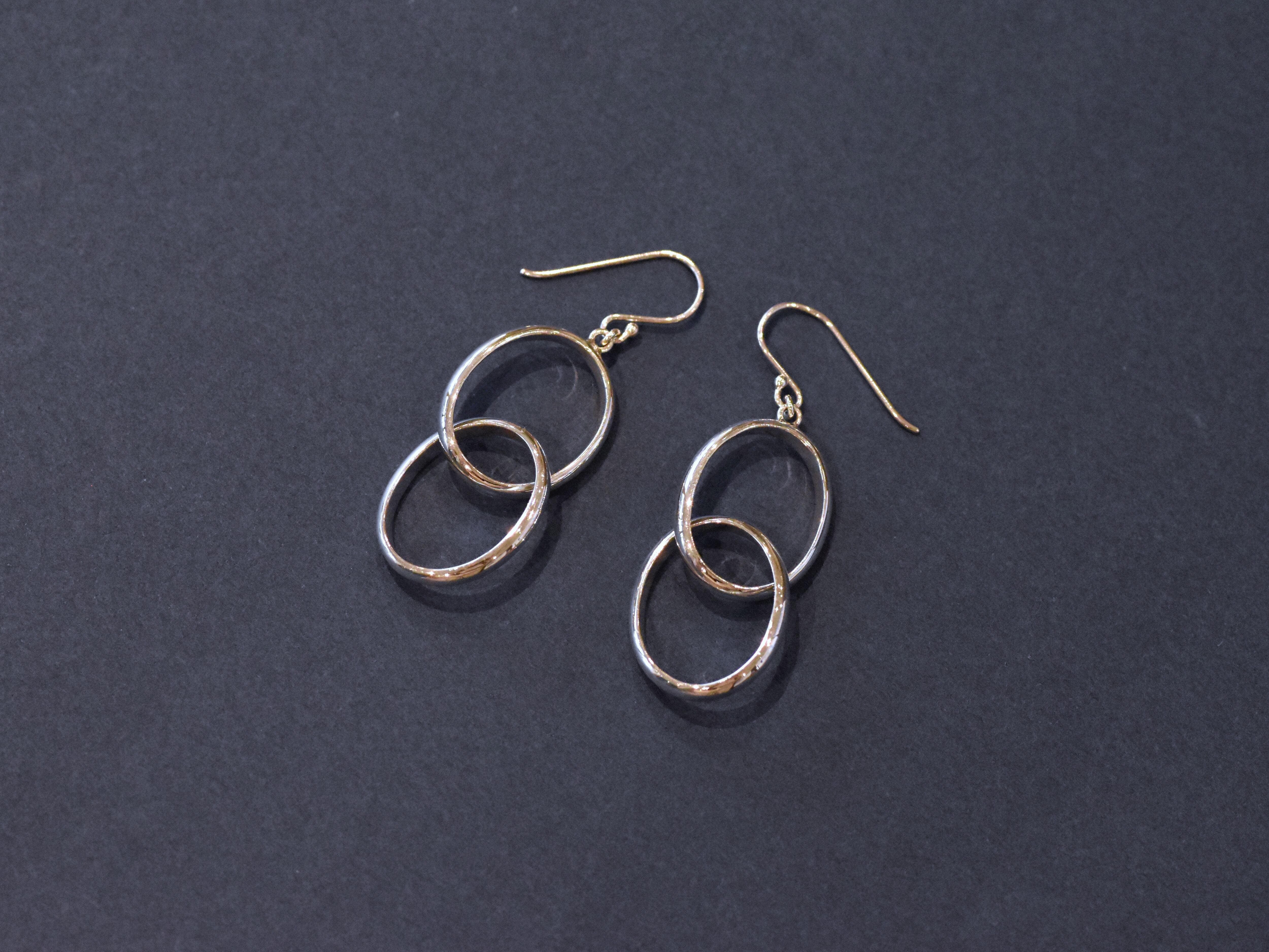 ふたつの楕円が連なって揺れる シンプルで印象的なピアス