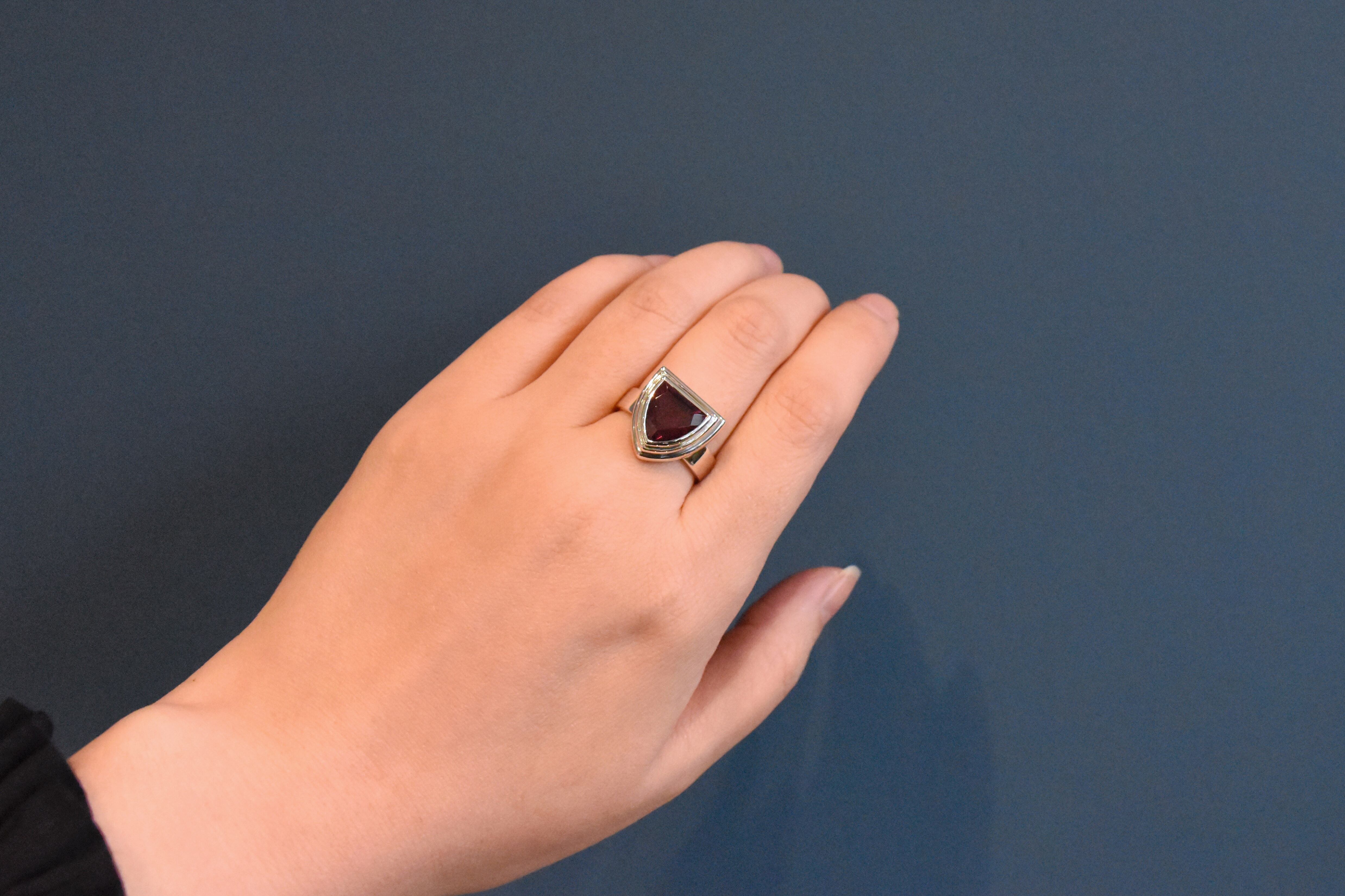 赤紫のガーネットを主役に仕立てたシルバーリングです