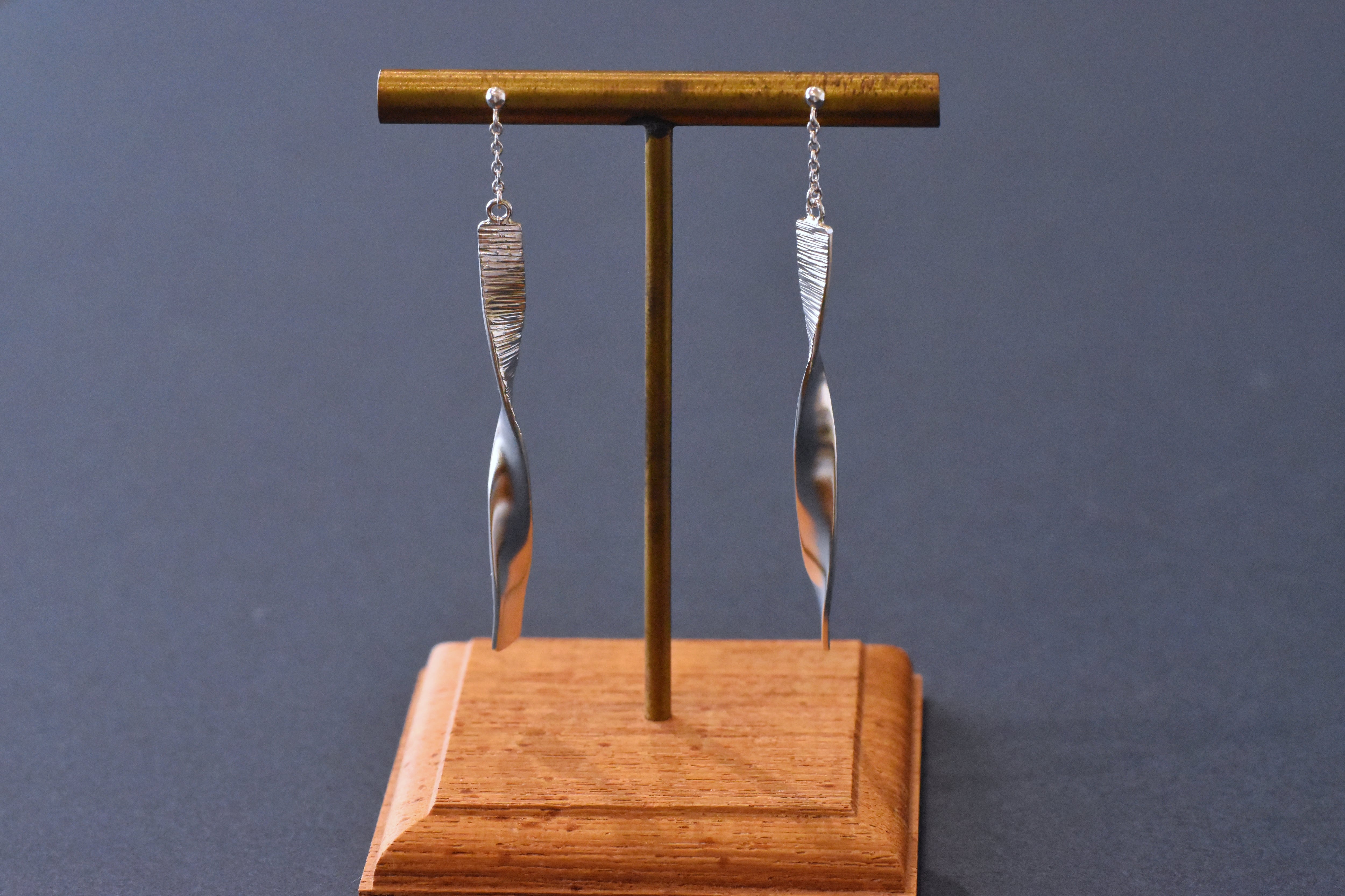 ひねりと筋の槌目のシルバーピアス