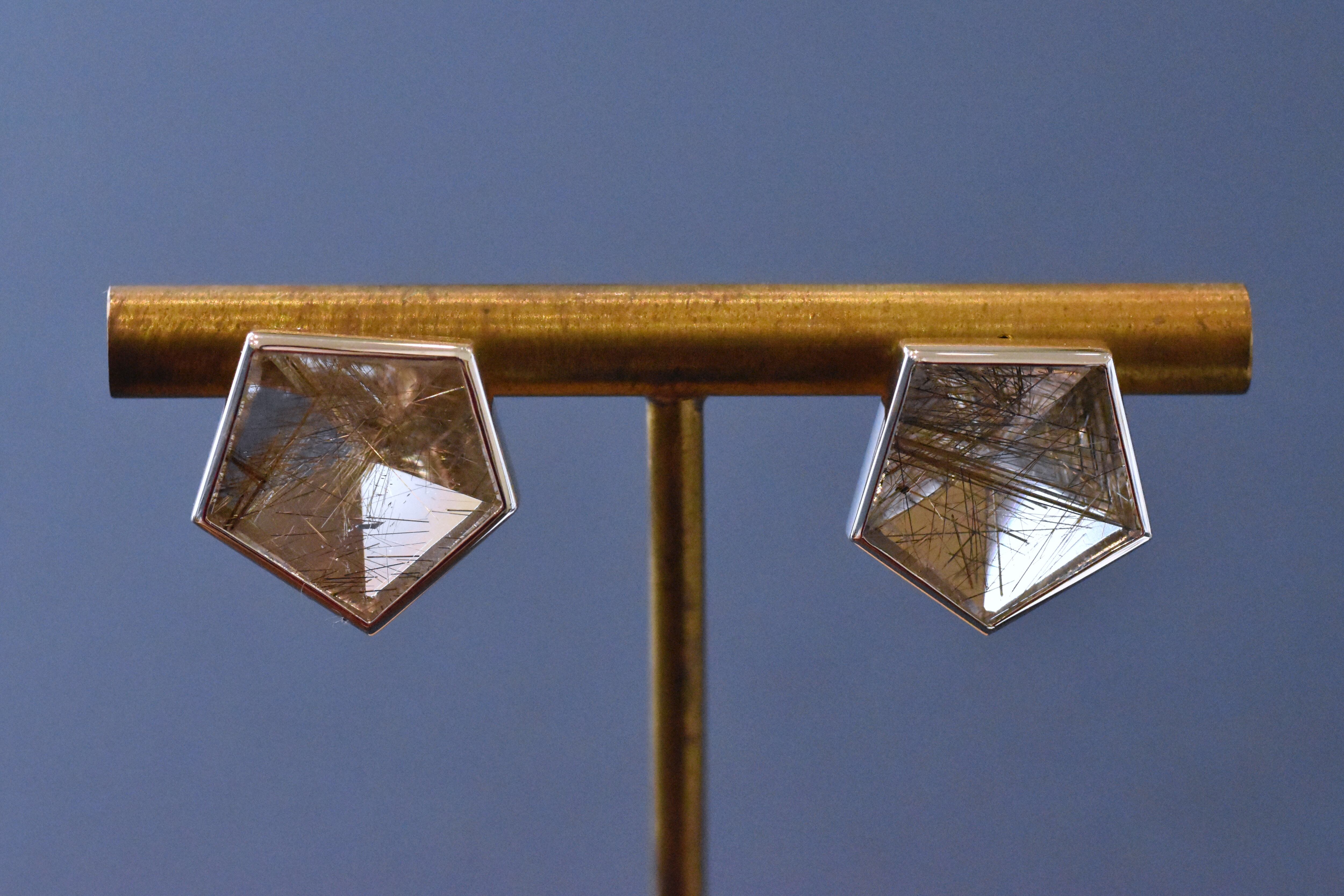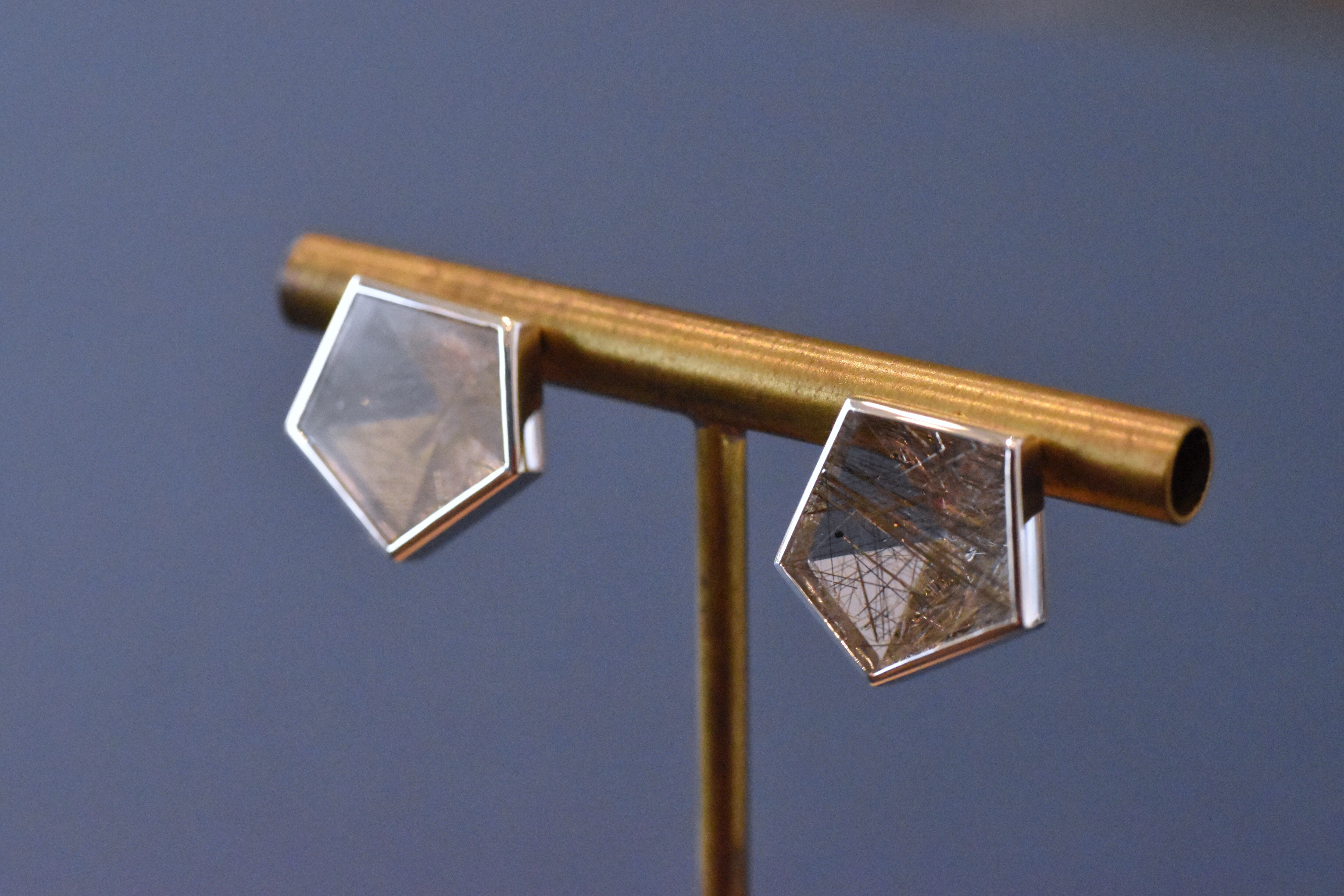無数の銀色の針を内包した シルバールチルクォーツのピアスです