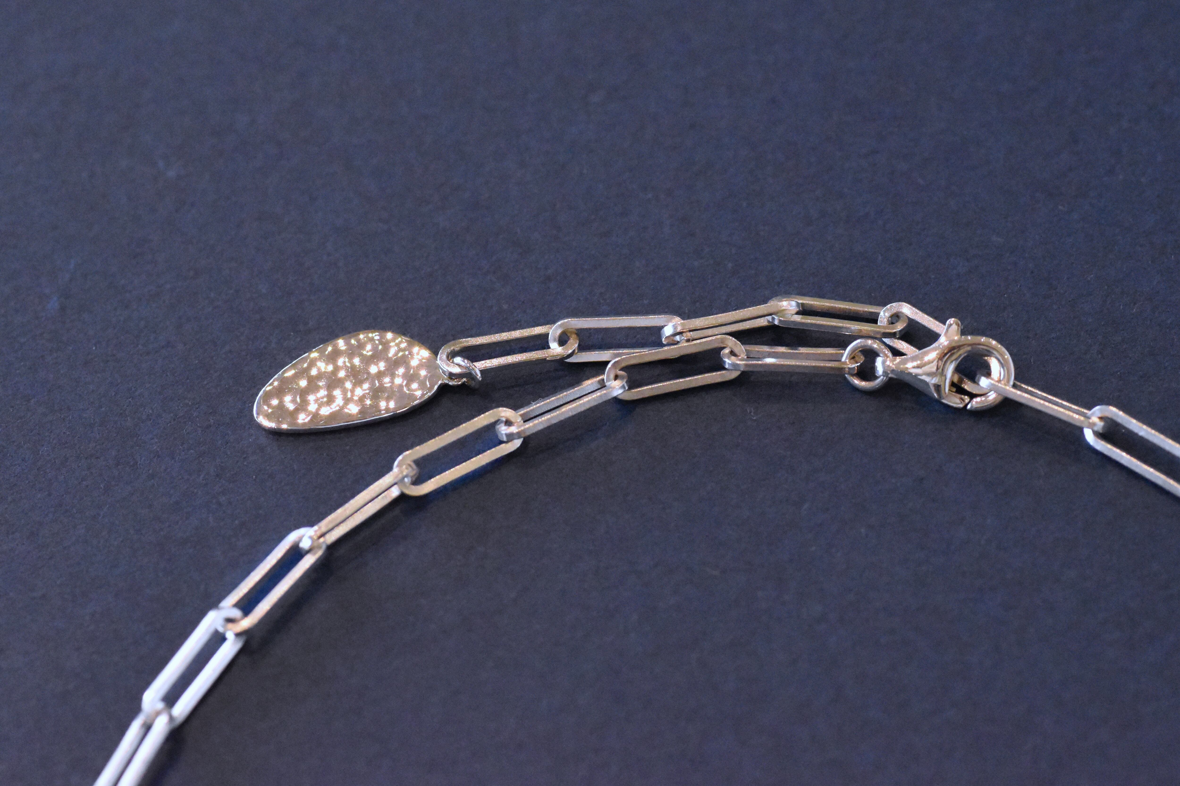 チェーンの前側には 筋の槌目を施した板状のパーツを配しました