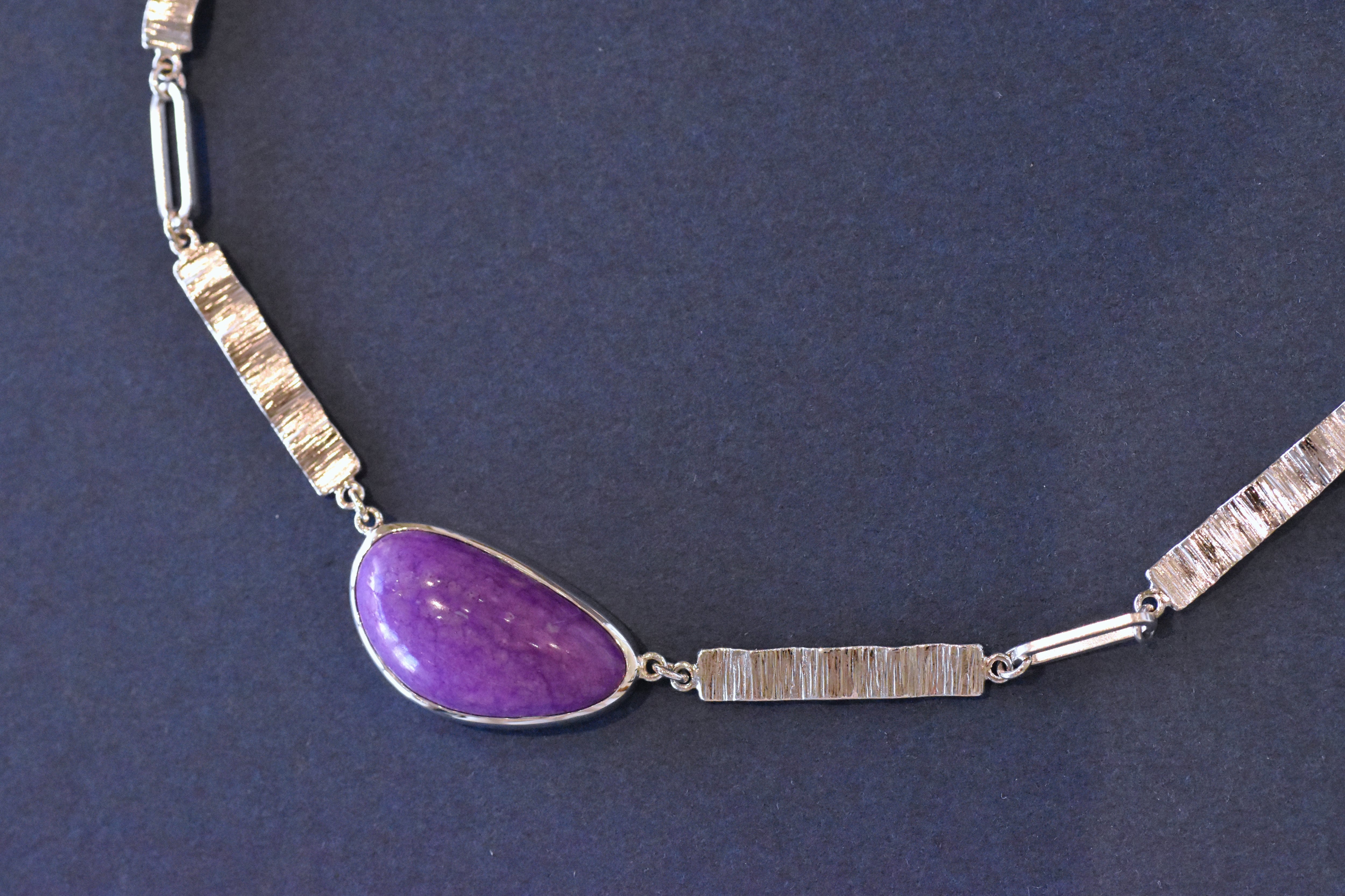マットな紫が印象的なチャロアイトを主役にしたネックレスです